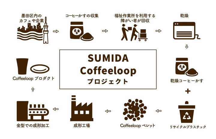 「すみだCoffeeloopプロジェクト」コーヒー豆かすをカップにアップサイクルしデニーズ全店に設置